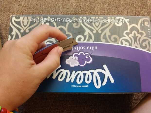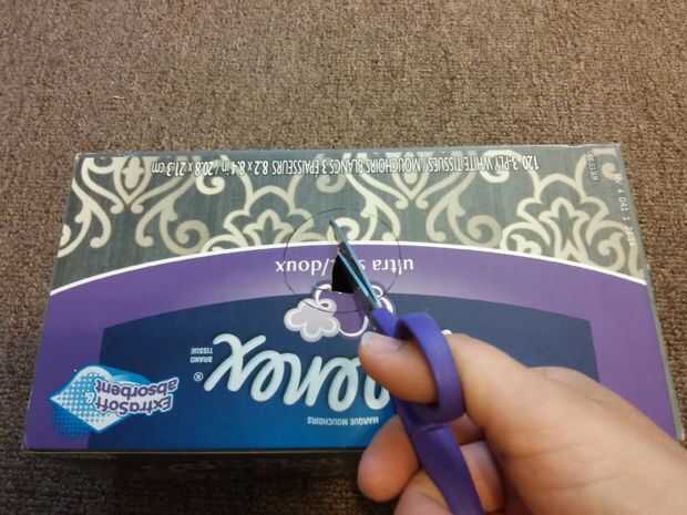 2. (Opcional) Utilice el cuchillo para cortar una sección del círculo que trazaste en la caja del tejido para que su tijera puede caber.