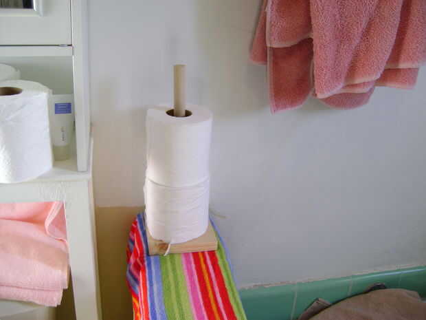 vi este Instructable para un sostenedor de papel higiénico que podría ser montado en la pared tira hacia el inodoro y pensaba que era impresionante. Tengo un conejo de la casa, y cualquier papel higiénico bajo 2' de la tierra se convierte en un jugue