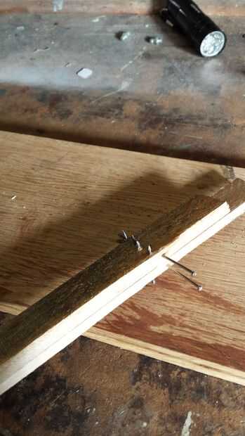 2. Añadir 4 clavos a cada extremo y clávelos a través de la Junta para que se peguen hacia fuera en el otro lado. También añadir 2 clavos a cada lado en cada extremo. En los extremos su deben ser 8 lugares para envolver el paracord en un círculo. Estos usas para fijar el paracord.