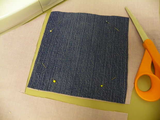 Corte un cuadrado de 7" de la tela púrpura. Se trata de la parte posterior de la agarradera.