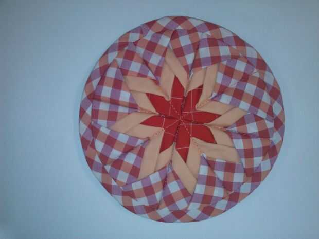 hace varios años ayudaron a hacer estos agarradores de starburst para recaudar fondos para nuestro Condado Club de extensión. Es casi como origami de tela. Están hechas de telas de desecho. La señora que estaba encargada de hacer estos falleció hace varios años y yo quería probar y averiguar si podía hacer uno de la memoria. Bien, tardé algunos hacer pero finalmente conseguí hacerlo!