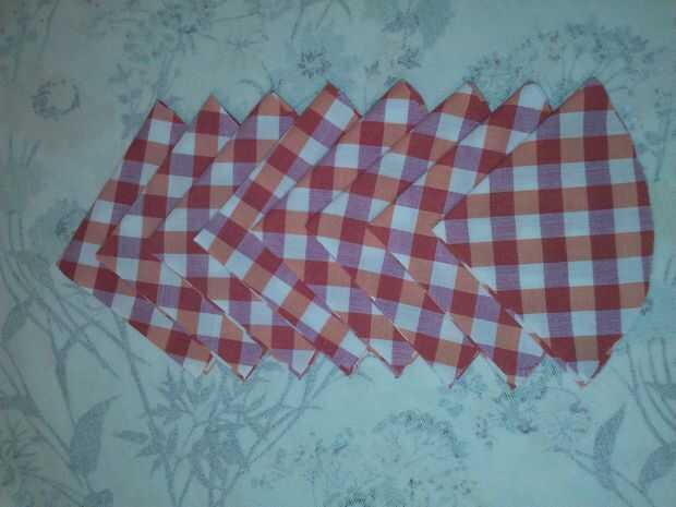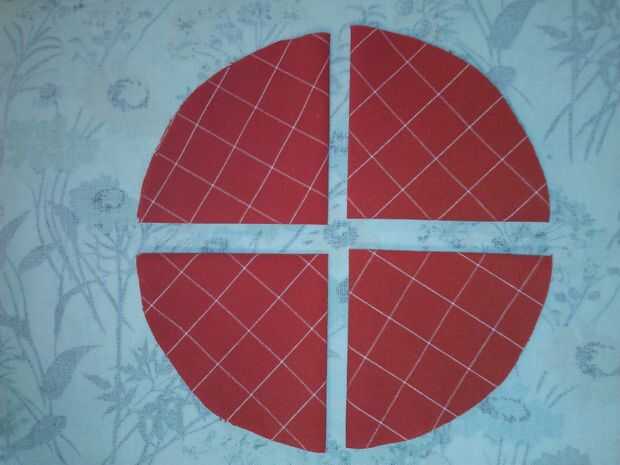 Lugar de uno de los 7" círculos sobre una superficie plana. Este será el círculo de la Fundación. Doblar los círculos restantes de 7" en medio, prensa. Doblar por la mitad otra vez y presiona. Pulsa los otros círculos de tela de la misma manera.