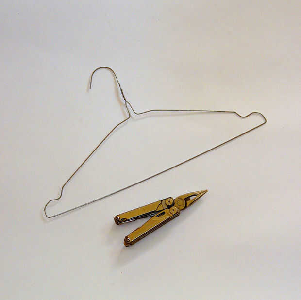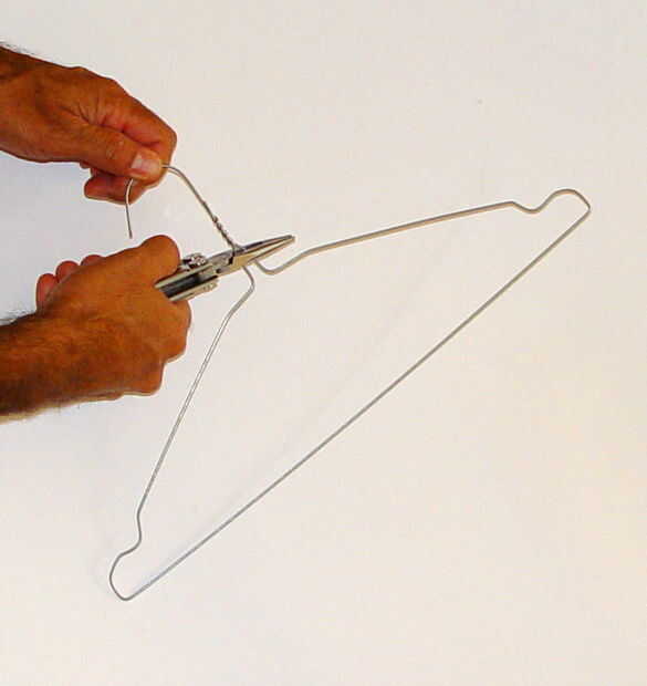 Utilice perchas de alambre común y una multiherramienta. Un cortador de alambre y alicates de pico largo si no tienes una multiherramienta. Si usted tiene ningunas herramientas, puede doblar el alambre hacia adelante y hacia atrás hasta que se rompe y forma de dedo al resto.