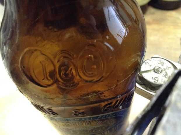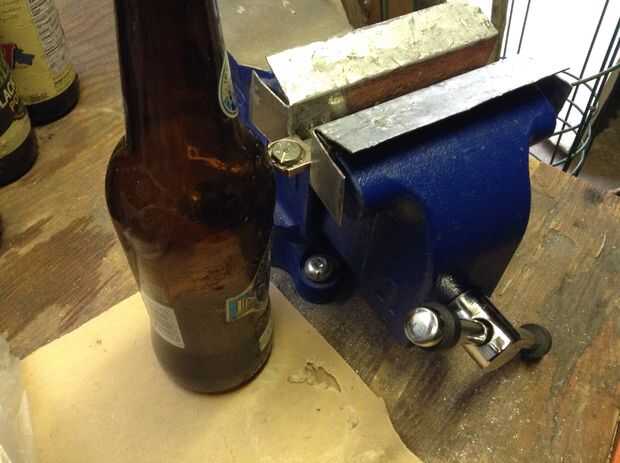 -El vidrio que herramienta en un tornillo de la abrazadera. Quieres hacer el corte en la botella justo debajo de donde el cuello empieza a cuesta. Que tendrás que poner la botella encima de algo para obtener la herramienta de puntuación a la altura deseada.