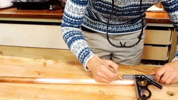 Fije la pieza de tubería de cobre en el agujero en el triángulo, se debe a un ajuste ceñido.