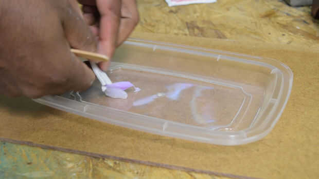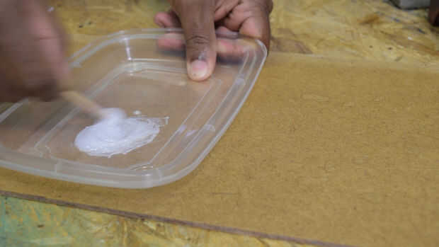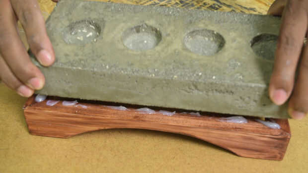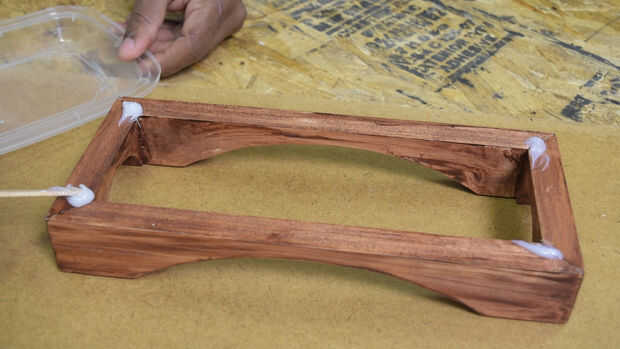Mezclé un 2 parte epoxi para asegurar el concreto a la madera.
