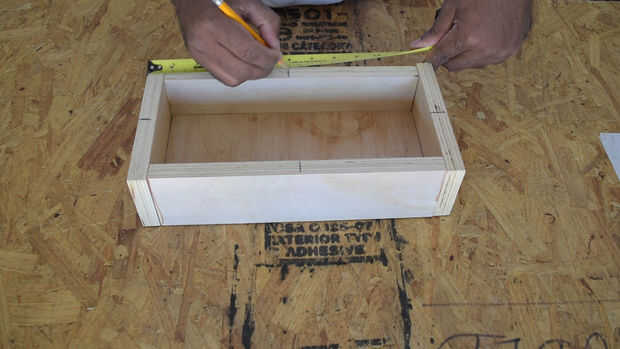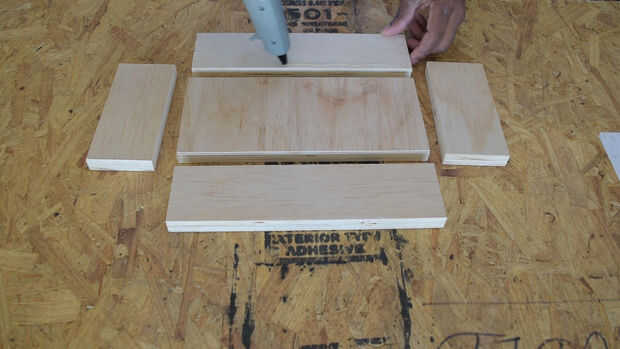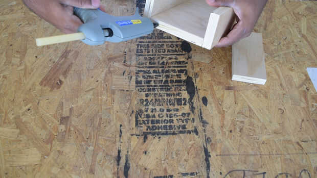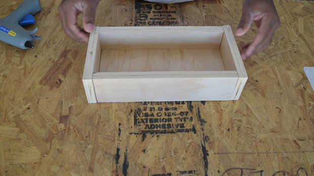 Cortar 5 piezas de madera 1 para la parte inferior y 4 para los lados como se muestra.