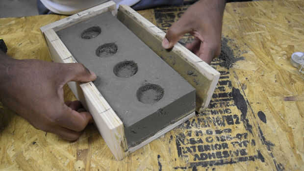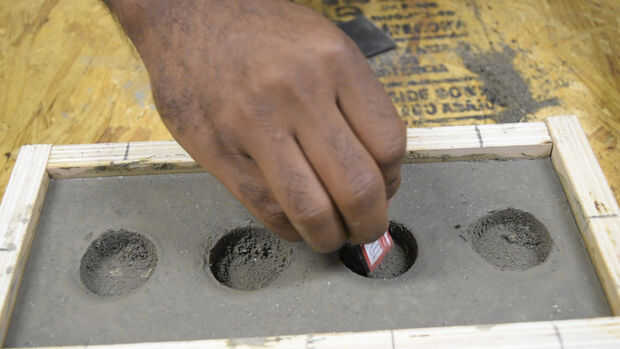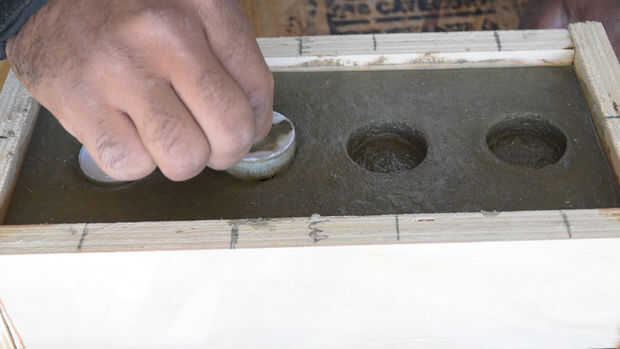 Me gusta los orificios de la burbuja de la forma. Si así no lo ves, luego vibrar el concreto derecho después de servir en la forma; antes que comience a curar. Debería eliminar la mayoría de las motas.