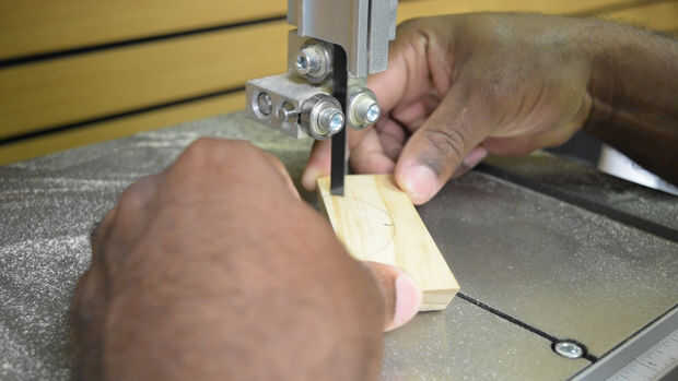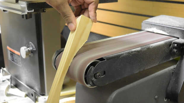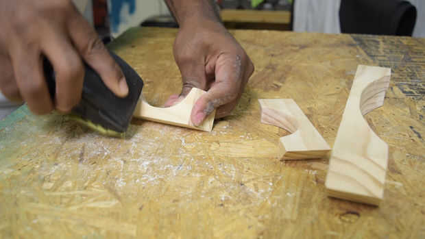 Corte la curva de la Sierra de banda. Luego arena hacia abajo en la lijadora de banda. Para la pieza más pequeña usé una lijadora de mano.