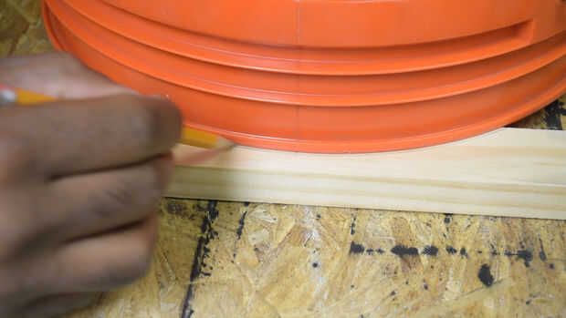 En el lado largo utilicé el labio de un cubo para ayudarme con el arco en la parte inferior. Entonces un pequeño puede para ayudar en el lado corto.