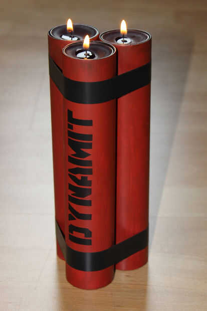 En caso de que usted se está preguntando, dinamita y TNT no son la misma cosa. Es un error común, que es simplemente incorrecto. Dinamita fue inventada en 1867 por el químico sueco Alfred Nobel, mientras que TNT fue inventado en 1863 por el químico alemán Joseph Wilbrand. Mientras que la dinamita es nitroglicerina simplemente en una forma más conveniente, TNT es trinitrotolueno, así que los dos son dos compuestos químicos totalmente diferentes. La materia formada en bastones cortos y envuelto en papel es realmente dynamit, TNT no... De ahora en adelante debe cantar alguien "causa estoy T.N.T., soy dinamita" o si ves un palo de TNT se muestra en una caricatura, usted sabrá mejor.
