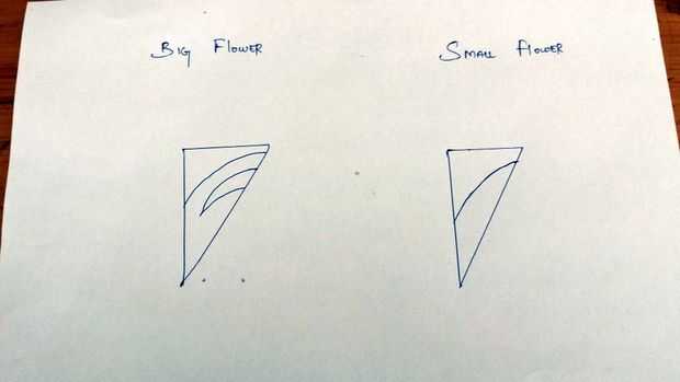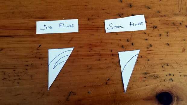 tienes que hacer 4 - flores grandes y 2 pequeñas flores con este patrón.