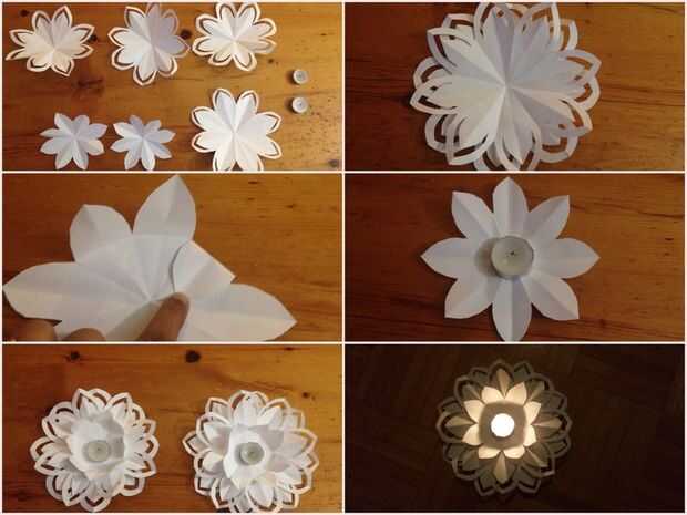 Doblar los pétalos de la flor pequeña y mantener la vela en el centro y pégalo.