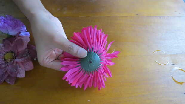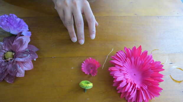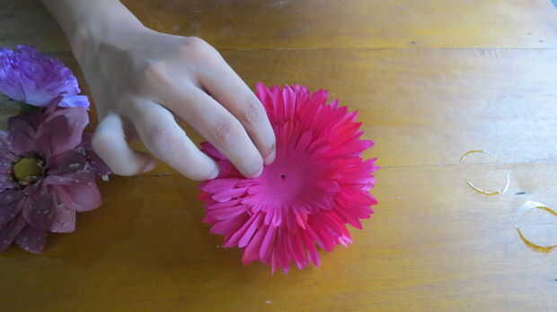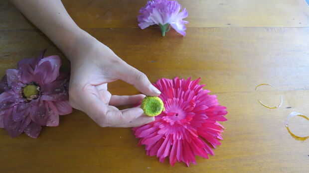 Quitar el centro de flores y una capa de pétalos para hacer espacio para la vela.