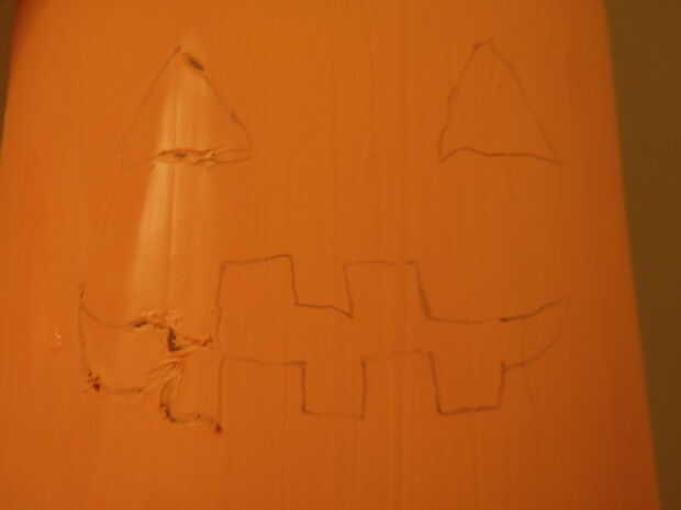 se trata de un gato-o-linterna que es bastante sencillo de hacer. Hace una agradable decoración de Halloween para poner hacia fuera con una vela dentro.Paso 1: Dibujar el diseño Copiar el diseño en el cuadro sobre la calabaza.Paso 2: Cortar la calaba