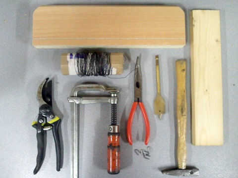 Martillo - clavos de abrazadera - unos alicates - U - de mano taladro bit - alambre de hierro - madera - podadera de madera plano (extensión)