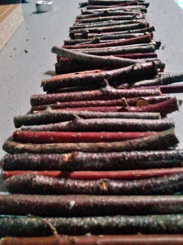 Obtener la podadera y encontrar algunas ramitas. Usé sólo ramas cual eran ya cortado. Ramas son unos 6mm a 10mm de diámetro. Una vez que tienes un montón de ramitas, empezar a cortar del mismo tamaño (dependiendo de la altura deseada).