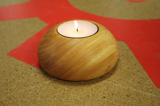 Sostenedor de vela de luz de té en un torno de madera (10 / 10 paso)