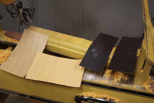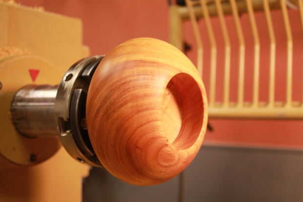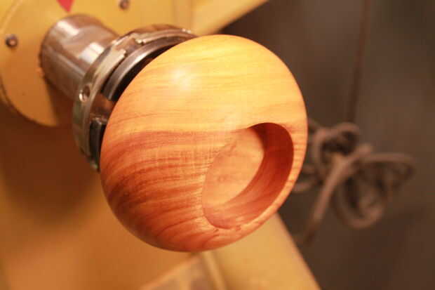 he terminado la parte superior antes de formar la parte inferior. Lija de 220 hasta 600 con una mezcla de cera en pasta clara y aceite mineral en partes iguales. Entre Arenas, utilicé toallas de papel mientras el torno era funcionando para limpiar lejos la mezcla de residuos de polvo de madera, cera y aceite. Las toallas de papel también son buenas para pulido hasta el acabado una vez que termines lijado.