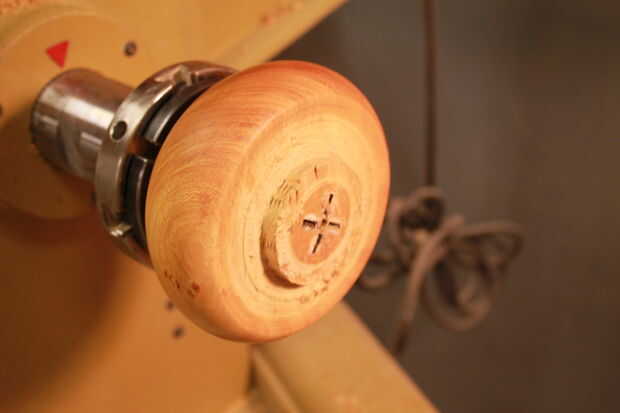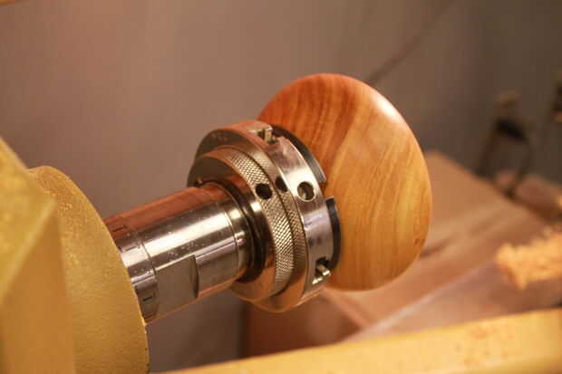 Yo en forma de la parte inferior por lo que es ligeramente cóncava y se sienta en su borde exterior. Esta forma hace el sostenedor de vela, agradable y estable, y creo que le da una agradable sensación en las manos. Lijado y acabado el procedimiento fue el mismo en cuanto a la parte superior.