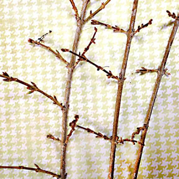 He utilizado ramas de mi arbusto de Forsythia. Me gustan los "cogollos" poco en las puntas