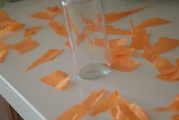 Usando tu manos rip off algunos trozos de planos el papel de tejido.