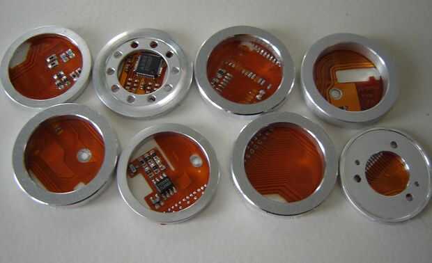 Cortar las piezas de la cinta del circuito para que ajuste en la abertura interna de los anillos (deben ser ligeramente mayor luego de la apertura por lo que puede ser grabados fácilmente en la parte posterior.)