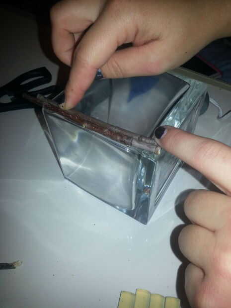 Invierno, primavera, verano, caída, del Dios amor brillar para todos!Paso 1: Cortar y pegar las teselas de vidrio.Lo que necesitas: Patrón, recipiente pequeño de vidrio; azulejos de mosaico de vidrio; alicates del azulejo; pegamento de cristal, blanc