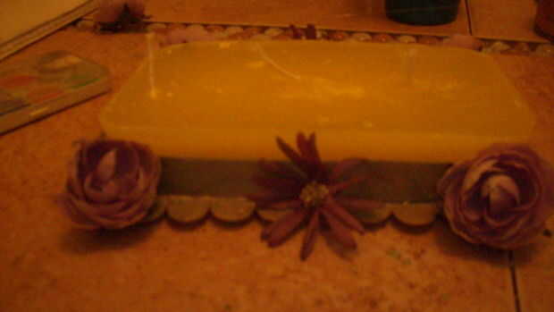 Deje que el barniz seque toma 3 a 4 horas para smt este pequeño. Spray barniz seca más rápido. Llegado el momento para uso la pistola de pegamento pegamento otra vez las flores en la izquierda sobre el espacio. Si usas una cinta, ahora es el momento para pegar en el interior del sostenedor de vela así que el pegamento de las flores y espacios huecos. Corte el exceso de la cinta si viene en la parte superior y se hacen un bonito Portavelas para tu mesa de centro o una idea de regalo...