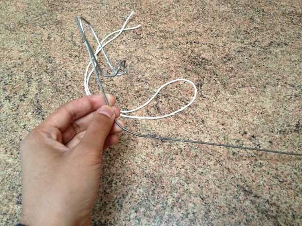 El alambre se apoyará en el pecho (en el centro) así que mantenerlo a la distancia que quieres tenerlo y doblar el resto del alambre hacia su hombro derecho y cuello. Usted puede doblar el alambre hacia atrás hasta su casi horizontal, donde alcanza el cuello. Ahora puede doblar el resto en una suave curva que vaya alrededor de la parte posterior del cuello.