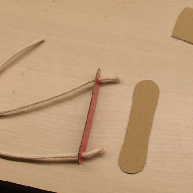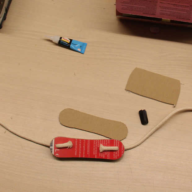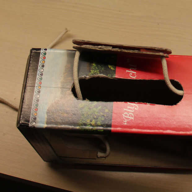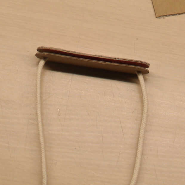 Unir las dos formas de mango. Agregue un trozo de cuerda entre ellos, asegúrese de que tiene un pedazo de ambos lados de la manija. Pegue el extremo de las cuerdas en el interior de la caja.