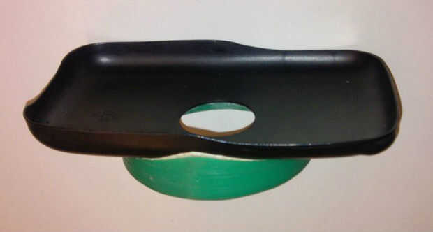 Unir la bandeja y el anillo de soporte y ponerla en el TS (usted debe presionar juntos para esto como la base da el centro de las TS). Debe colocar la bandeja en el aro para que quede centrado a la base de las TS. Marque esta posición en la parte posterior de la bandeja (alrededor del anillo de soporte) con un marcador permanente. Tome la bandeja y hacer algunos lijado alrededor de la marca para que el pegamento puede pegar allí mejor. Hacer el lijado en el anillo de soporte también. Poner pegamento en el anillo de soporte y coloque la bandeja en él centrado correctamente. Dejó el trabajo de la cola, siempre y cuando necesita.
