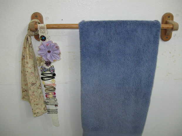 Aquí está lleno y con la toalla en la barra... También almacenar cintas de pelo largo por la colocación de la varilla :)