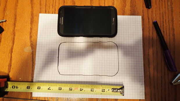 En lugar de utilizar espacio en el mostrador cuando cargar el teléfono, hice este sostenedor del teléfono de cartón rápido. Todo lo que necesita es un pedazo de cartón, una cuchilla exacto y cinta adhesiva o pegamento caliente.Paso 1: Coloque la plan