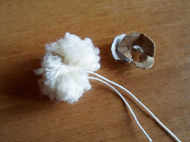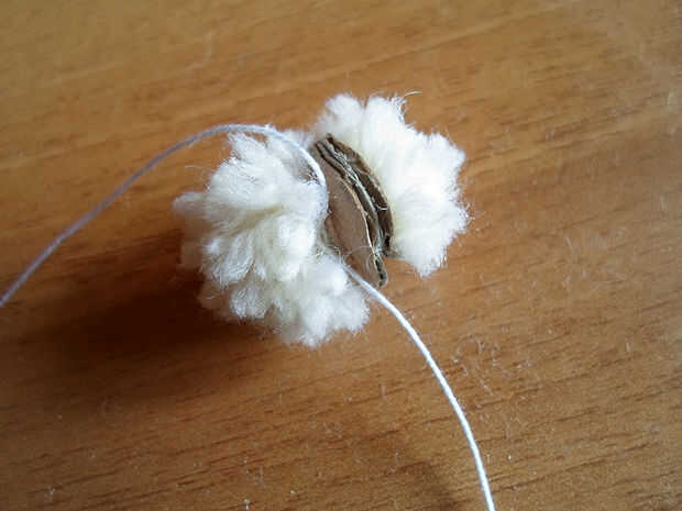 Ahora corte los discos de cartón, teniendo cuidado de no cortar la lana.