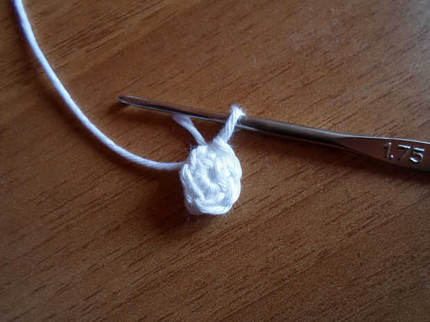 Ronda 1: hacer 6 sc todo alrededor del círculo y del resbalones de la puntada en el sc de la primera.