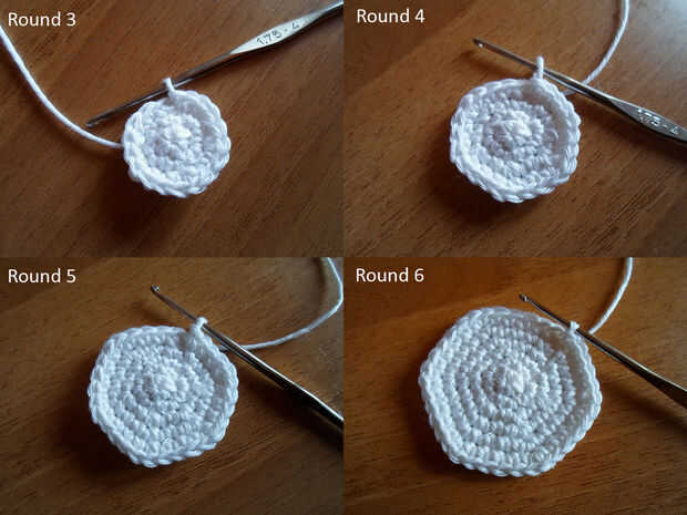 Ronda 2: hacer 2 sc en cada punto alrededor de un total de 12 sc.
