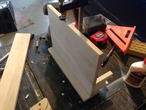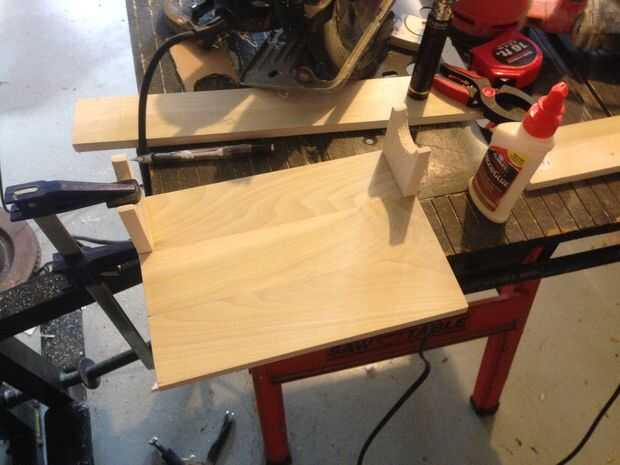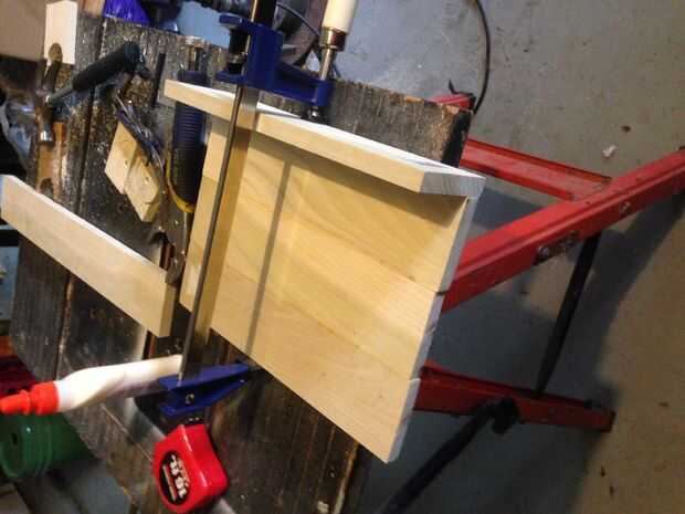 En primer lugar, cortar 4 11" pedazos del álamo. Pegamento 3 bordes y 4 en el final en un 90 * ángulo. Había compensado el pedazo de extremo por unos 3/4" que se basa en la canalización vertical. Esto, sin embargo, dependerá de tu moto, la altura de las piernas y su ángulo.