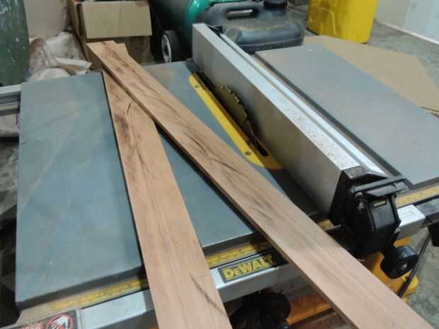 Estoy usando una hermosa pieza de madera de Remo. Primero tendrá que marcar a mitad de camino de la con fuera de la pieza. Entonces es en la Sierra de banco para dividir la longitud por la mitad. Siempre tomar extrema precaución al utilizar herramientas eléctricas. (Nota: recomiendo bajar la hoja de sierra para cortar la parte inferior de la mitad de la tabla, luego Dale la vuelta y hacer la otra mitad.) Después de esto es una buena Idea darle el corte plano y los bordes de una arena rápida.