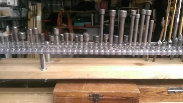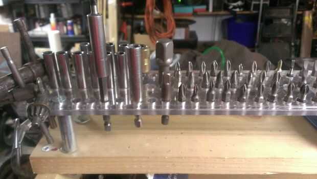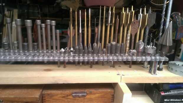 si eres como yo, no como herramientas, en un caso, desea hacia fuera y visible y grabbable. Así cuando finalmente conseguí un conjunto de broca forstner, que haría una visualización rápida y fácil para ellos y algunos pedacitos de la espada.Es muy fá