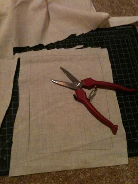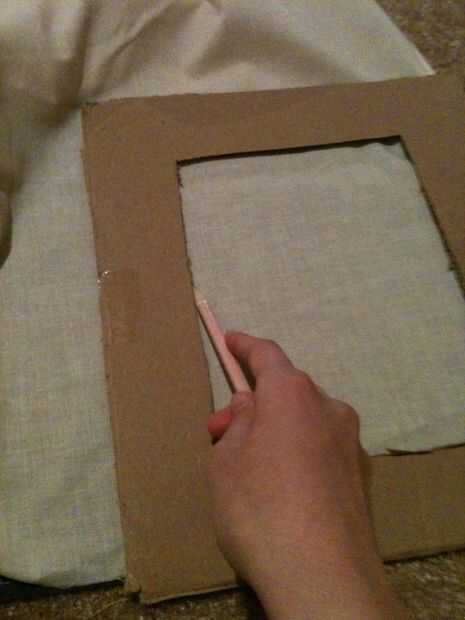 a continuación, colocar la tela de muselina sobre su tabla de cortar. Coloque el marco sobre la tela y traza con un lápiz a lo largo del interior de la abertura rectangular. Cortar a la tela, dejando algunas pulgadas alrededor del rectángulo que trazaste.