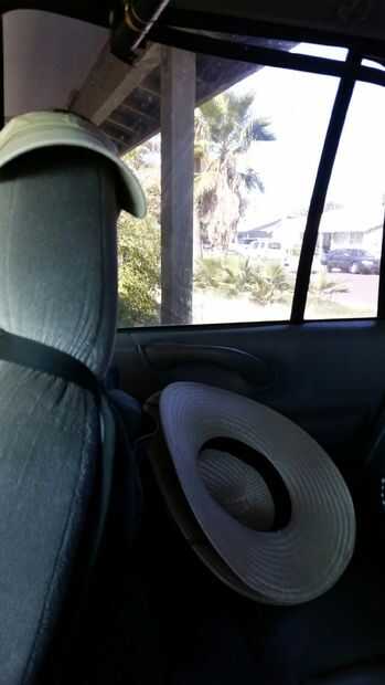 Tenemos un sombrero de vaquero y ninguno de nosotros sabe qué hacer con él una vez que conseguimos en el camión. Es una mierda. Tiro en el asiento y alguien se sienta en él. Plop en el reposacabezas, pero cae en el piso. Del sombrero siempre en el camino y siempre en peligro de muerte.