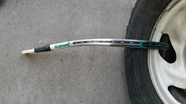 Sostenedor del sombrero de vaquero para el carro (usando una raqueta de tenis) (4 / 6 paso)