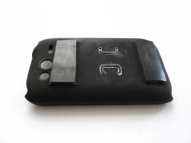 Usando pegamento o cinta adhesiva de doble cara, coloque dos pequeños trozos de caucho o un material similar a la parte posterior de la caja. Esto evitará que el caso estable y también absorberá una parte de los impactos de la carretera. Dependiendo de la posición del titular, puede apilar un par de capas de caucho para "moldear" la interfaz entre el caso y el vástago de manillar. Yo voy ser montaje mina en el tallo, así dos parches solo será suficientes aquí.