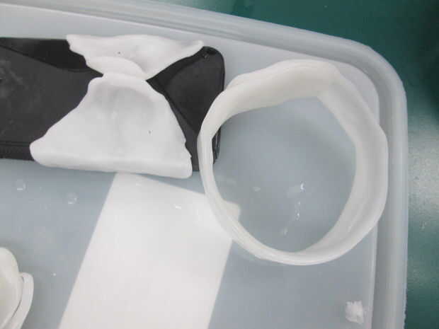 Ahora, estamos cerca de terminar la construcción, pero hay un paso más. Tenemos que los lados del teléfono entra en el molde de plástico capaz de. Tenemos que agarres para el teléfono como se muestra en las fotos que os he proporcionado. Es bastante autoexplicativo de molde justo allí el plástico a los lados del teléfono. Una vez que haya moldeado los puños solo fíjela a la pieza de la muñeca.