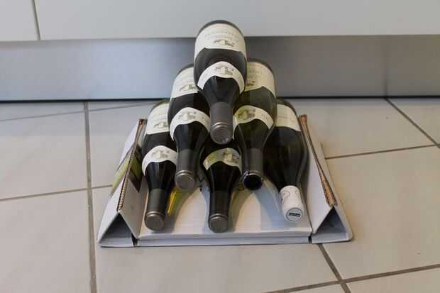 Ahora su sostenedor del vino está listo. Para usarlo, pones las botellas en él en una pirámide.