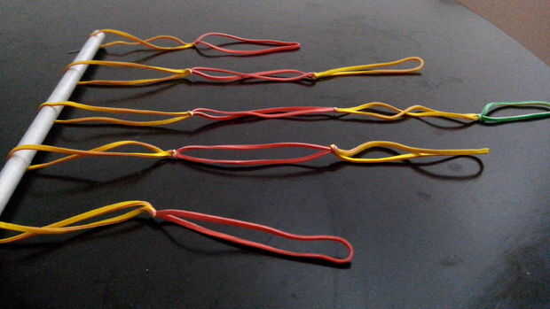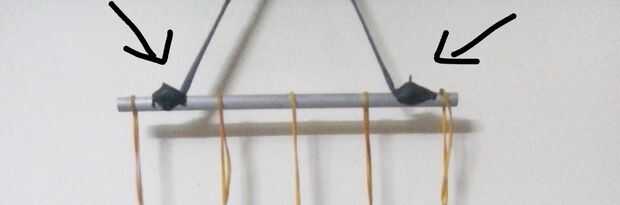 Hacer ganchos con cables de aluminio para las teclas de colgar... (lo siento no tengo un pic del gancho.) Tomar el cordón y pegamento igualmente en la barra como se muestra en la imagen de arriba...