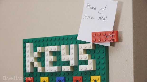 Añadir una bisagra de Lego para utilizar como titular de la nota.