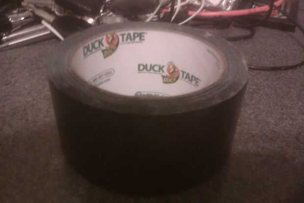 Como he dicho antes, no estaba seguro todavía cómo quería fijar los imanes, pero sabía que quería oculto. Después de mirar alrededor de mi desordenado escritorio me di cuenta que tenía un rollo de cinta aislante negra. Perfecto! Puse a los dos imanes en la parte superior del manguito asegurándose de que estaban conectados. A continuación, arrancó un trozo de la cinta y coloca la matriz en el lado pegajoso.