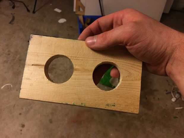 Imprimir la plantilla suministrada. Corte y rocío se adhieren a algunos restos de madera. Esta será su guía para ubicación tamaño y orificio.